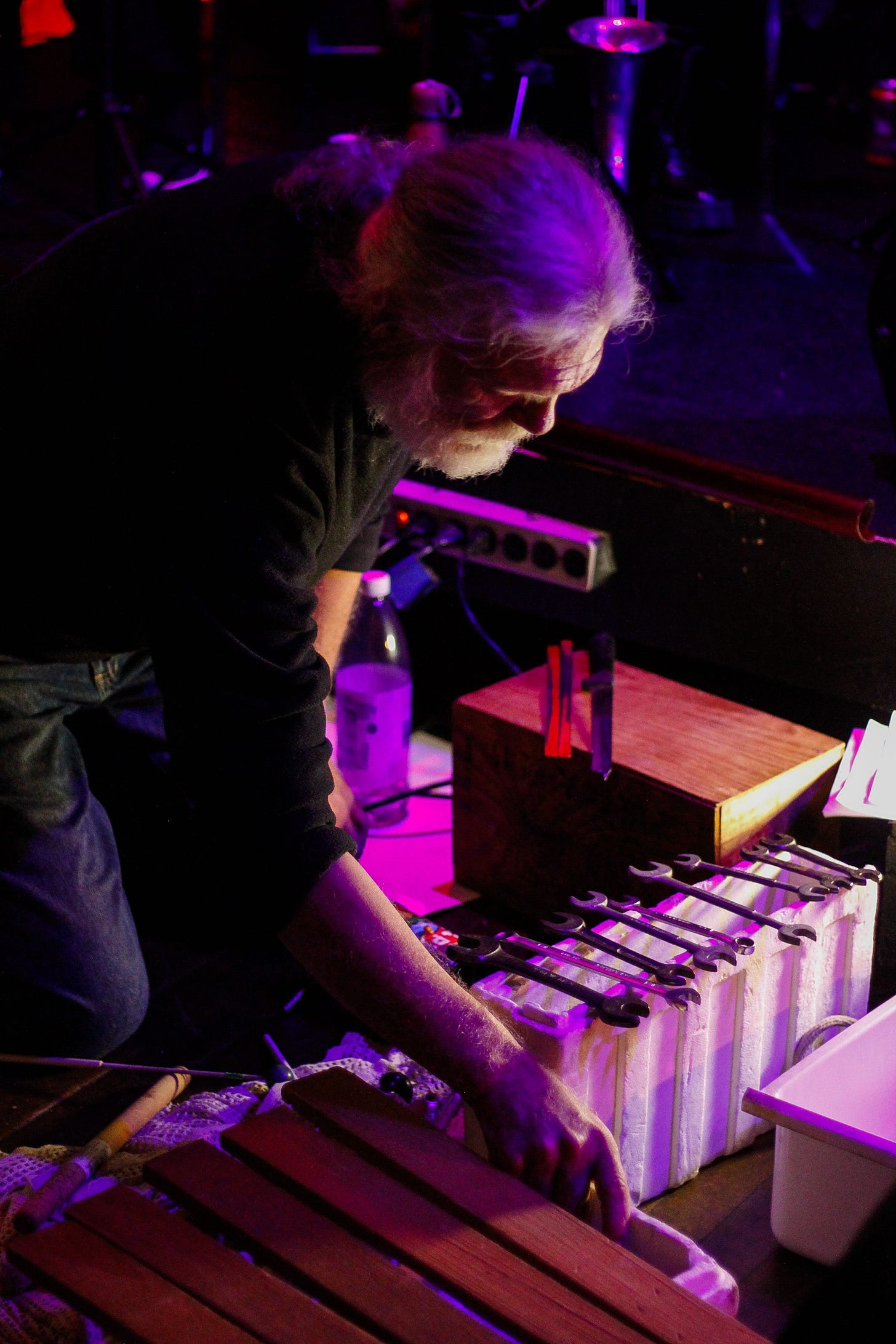 Skip La Plante invents, builds, composes for, performs on and teaches with musical instruments built from trash and found objects. His favorite food is wild raspberries. About 200 of his compositions have been presented professionally, nearly all created for solo performer or ensembles playing largely if not entirely instruments he built. About half of those compositions were created for small modern dance troupes including a long collaboration with choreographer Wendy Osserman. Many of the rest were created for new music ensembles including Music for Homemade Instruments (1975-2005) and Gamelan Son of Lion (2006-present). The American Festival of Microtonal Music has presented about a dozen of his compositions. His instruments have been exhibited at The Smithsonian Institution, PS 1, The Library for the Performing Arts, Materials for the Arts, New Music America and elsewhere. Skip has appeared on Mr. Rogers Neighborhood and worked with Joseph Chaikin and Sam Shepard on several theater projects. As a teaching artist he has appeared in about 1700 programs with Bash the Trash, Carnegie Hall, Young Audiences NY, Materials for the Arts, Brooklyn Philharmonic, Open Classroom Collaborative and others. Skip is a classically trained bass player also spent two years in Java, Indonesia studying gamelan performance and instrument construction,